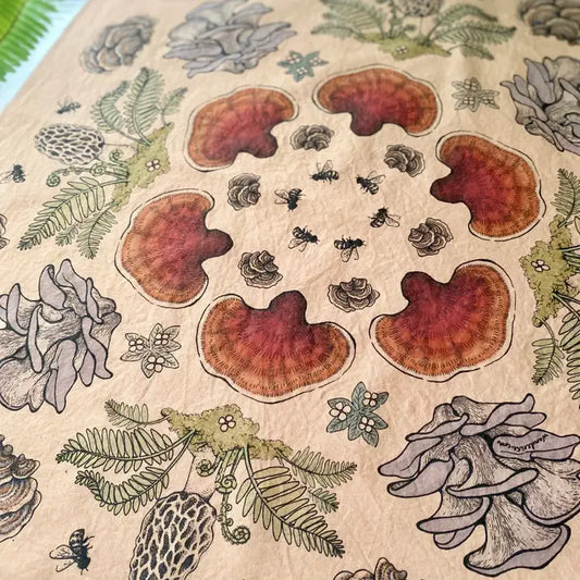 TEA-DYED MUSHROOM MANDALA - BANDANA