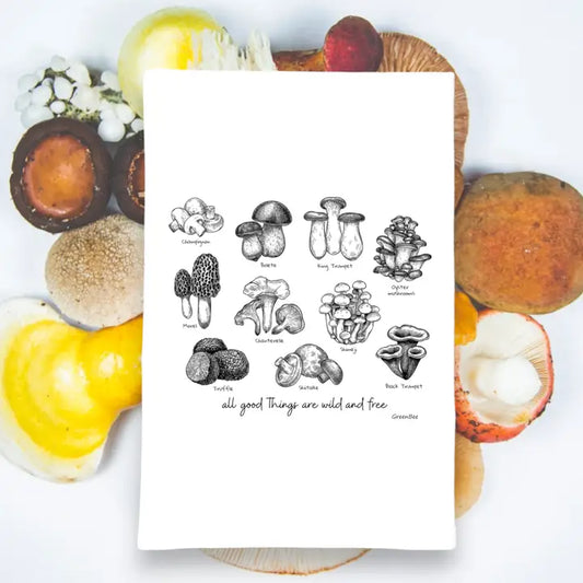 ALL GOOD THINGS ARE WILD AND FREE MUSHROOM - KITCHEN TEA TOWEL